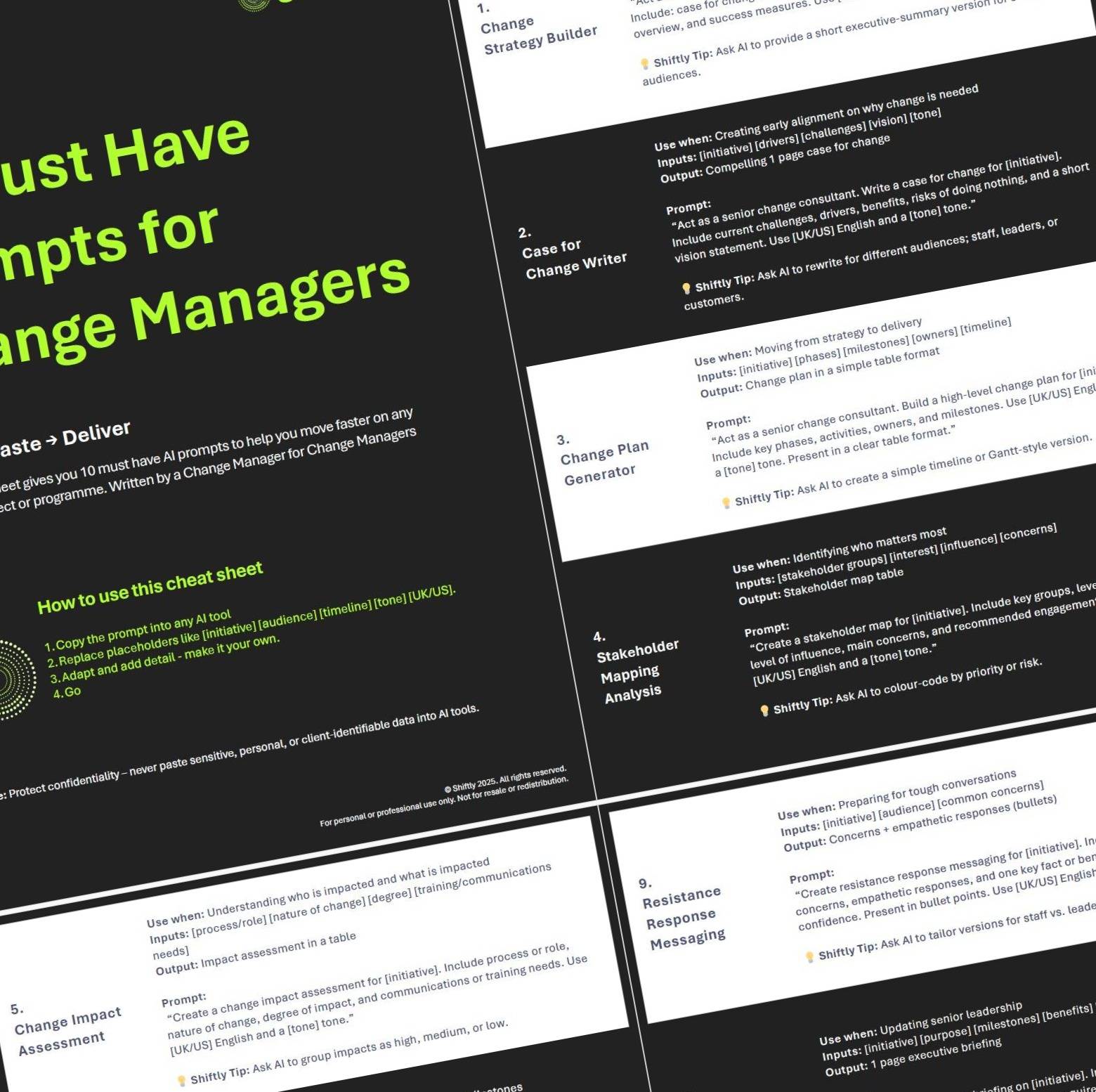 Ideal for anyone who needs to move fast or wants to see how AI can support change work. Copy, paste, adapt and go.