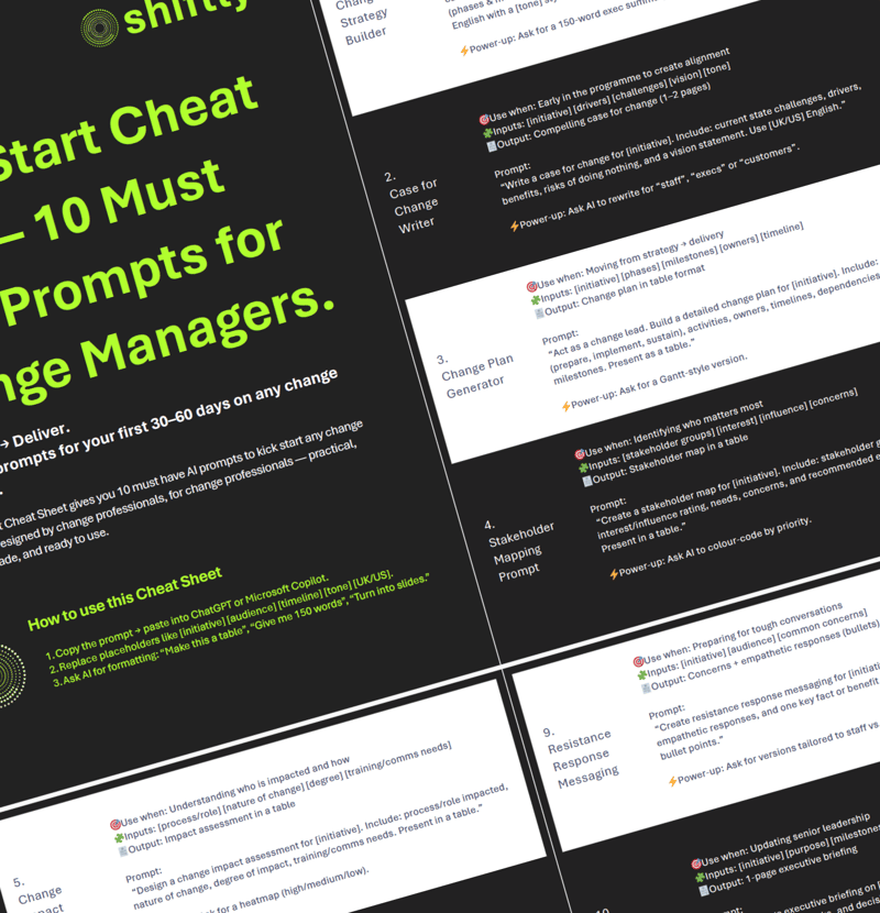- ⚡ Practical, time-saving AI prompts used by change professionals